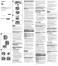 Wir stellen 8 PDF-Handbücher Sony SAL85F28 zum kostenlosen herunterladen nach Dokumenttypen zur Verfügung Bedienungsanleitung